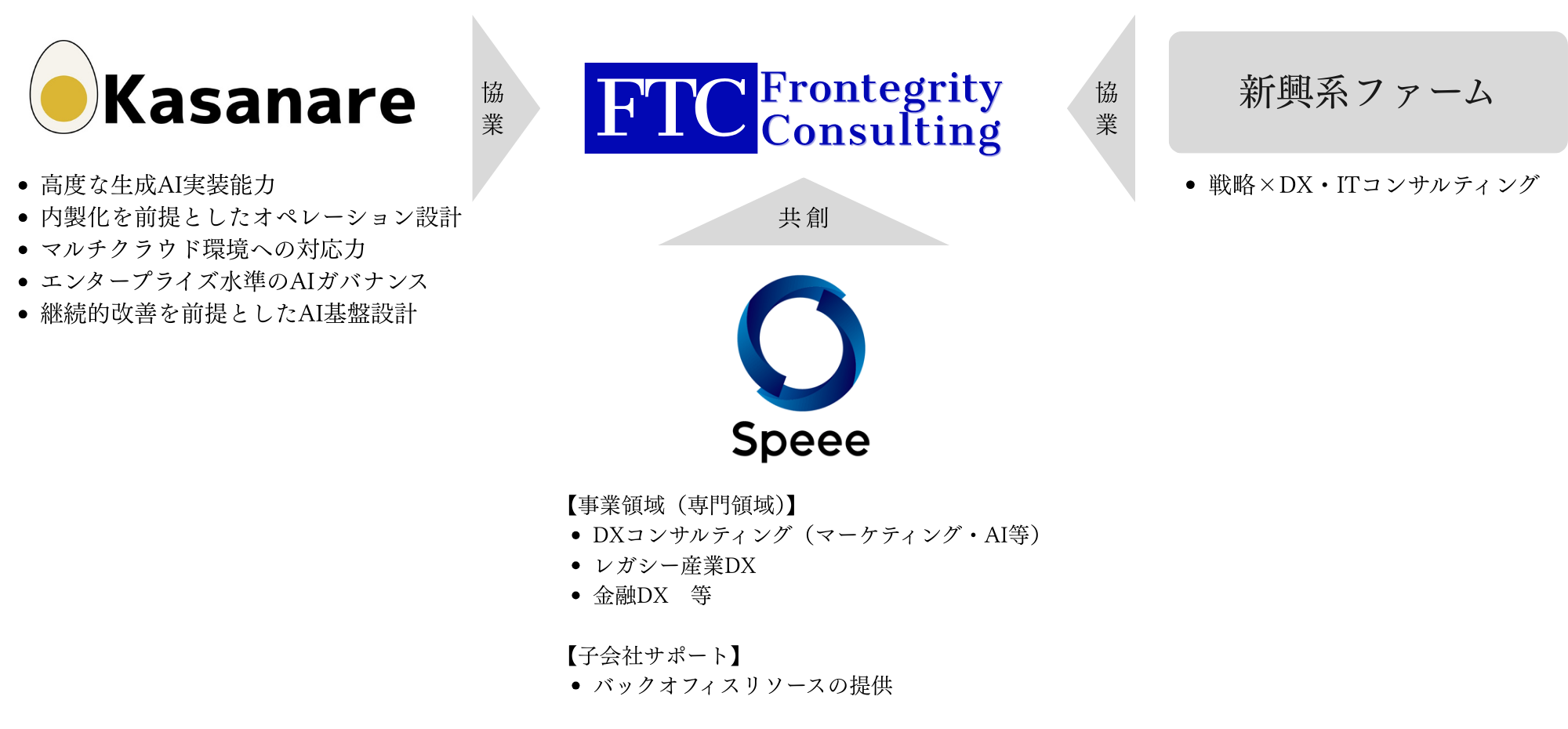 その上で、確定した定義に前提とした実行に必要な機能をFunction Deliveryとして提供し、実行を加速させます(必要に応じて、親会社のSpeee、外部パートナーの生成AIスタートアップ・新興系ファーム等と連携し、最適な体制で支援します)
